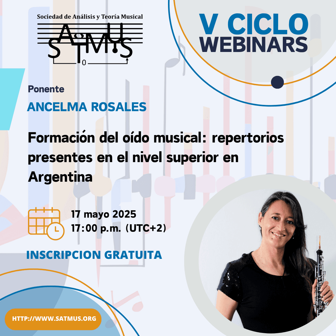 La grabación en vídeo del webinar “Formación del oído musical: repertorios presentes en el nivel superior en Argentina”, por Ancelma Rosales, ya está disponible en el canal de YouTube de SATMUS en el siguiente enlace: https://youtu.be/EP-mXXPOeHA.